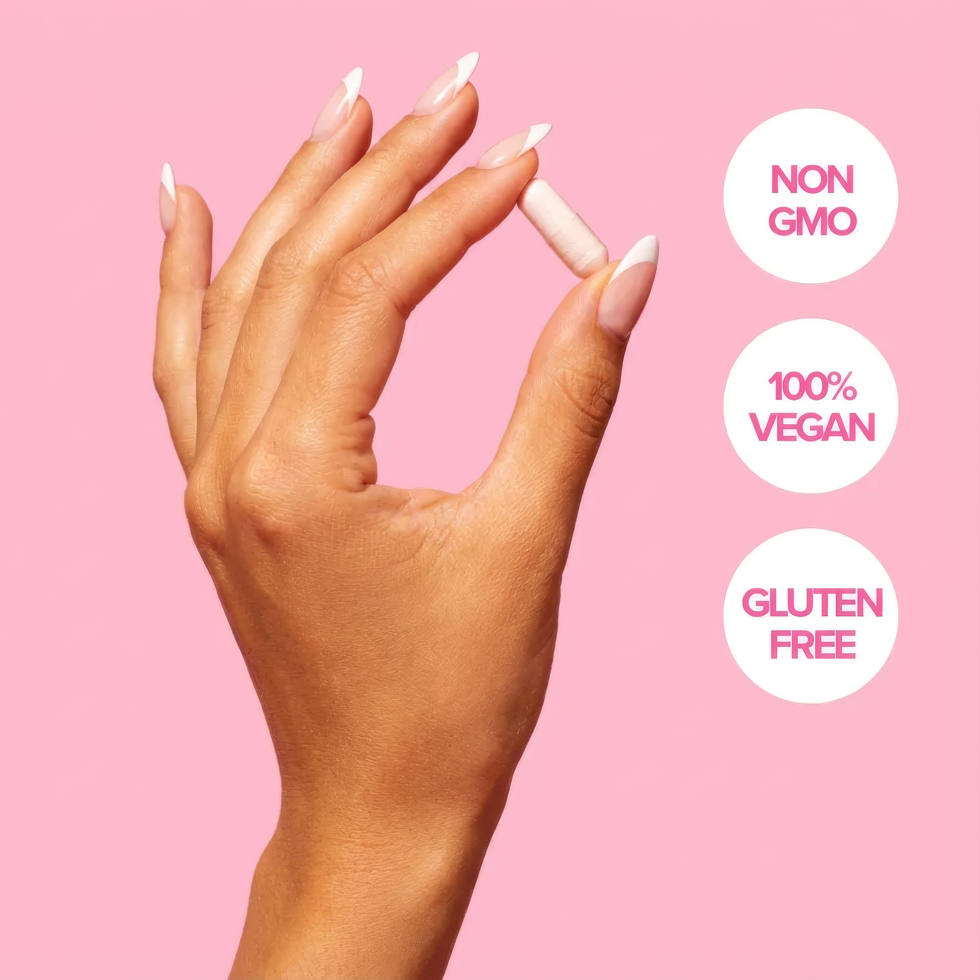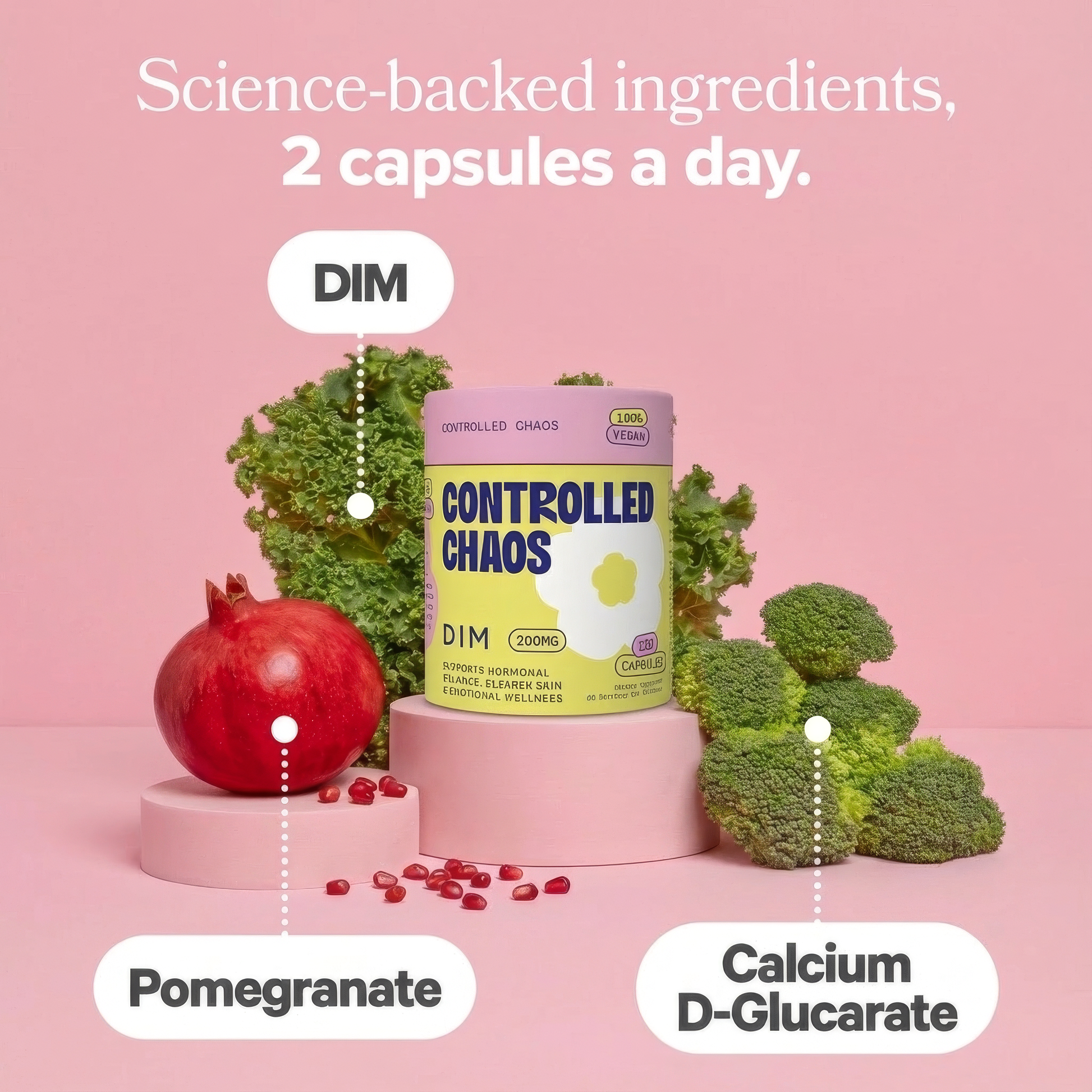Your cycle-syncing, breakout-banishing, confidence-boosting solution — powered by clinical doses of DIM, pomegranate, and skin-clearing botanicals.